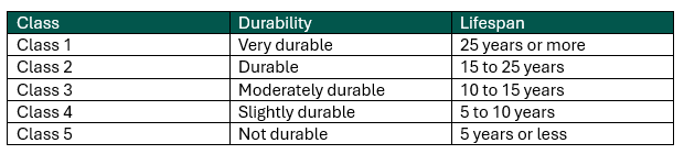 There are five durability classes: